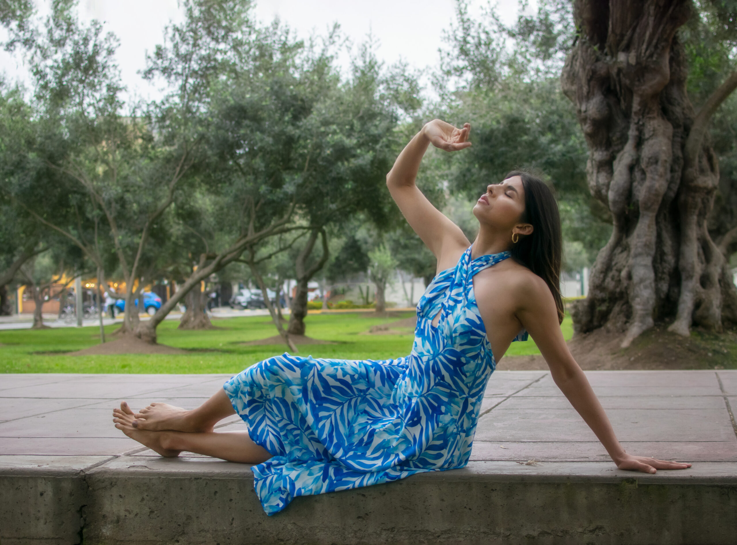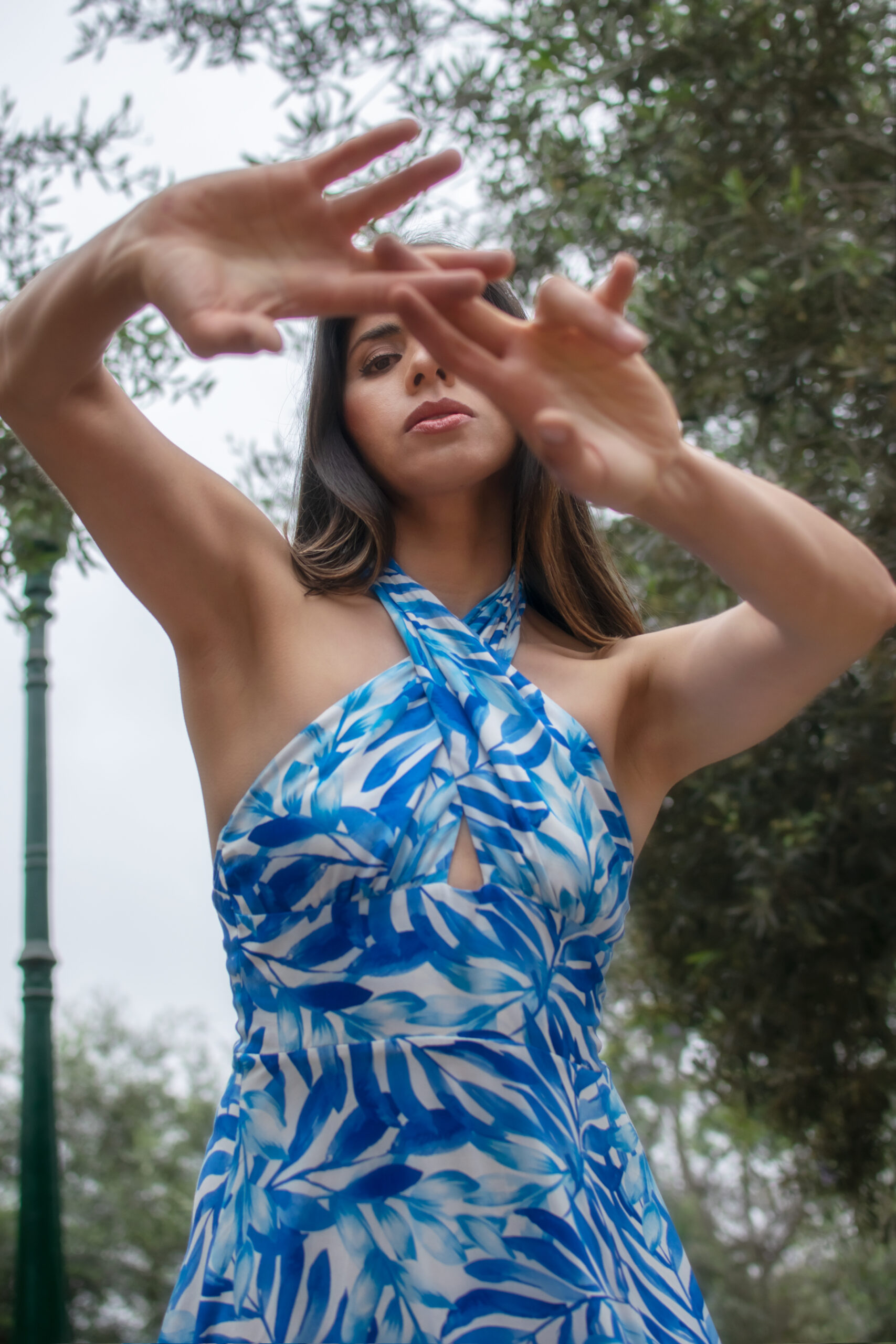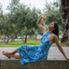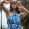 De cuello halter y estampado tropical, pensado para destacar con frescura y movimiento.