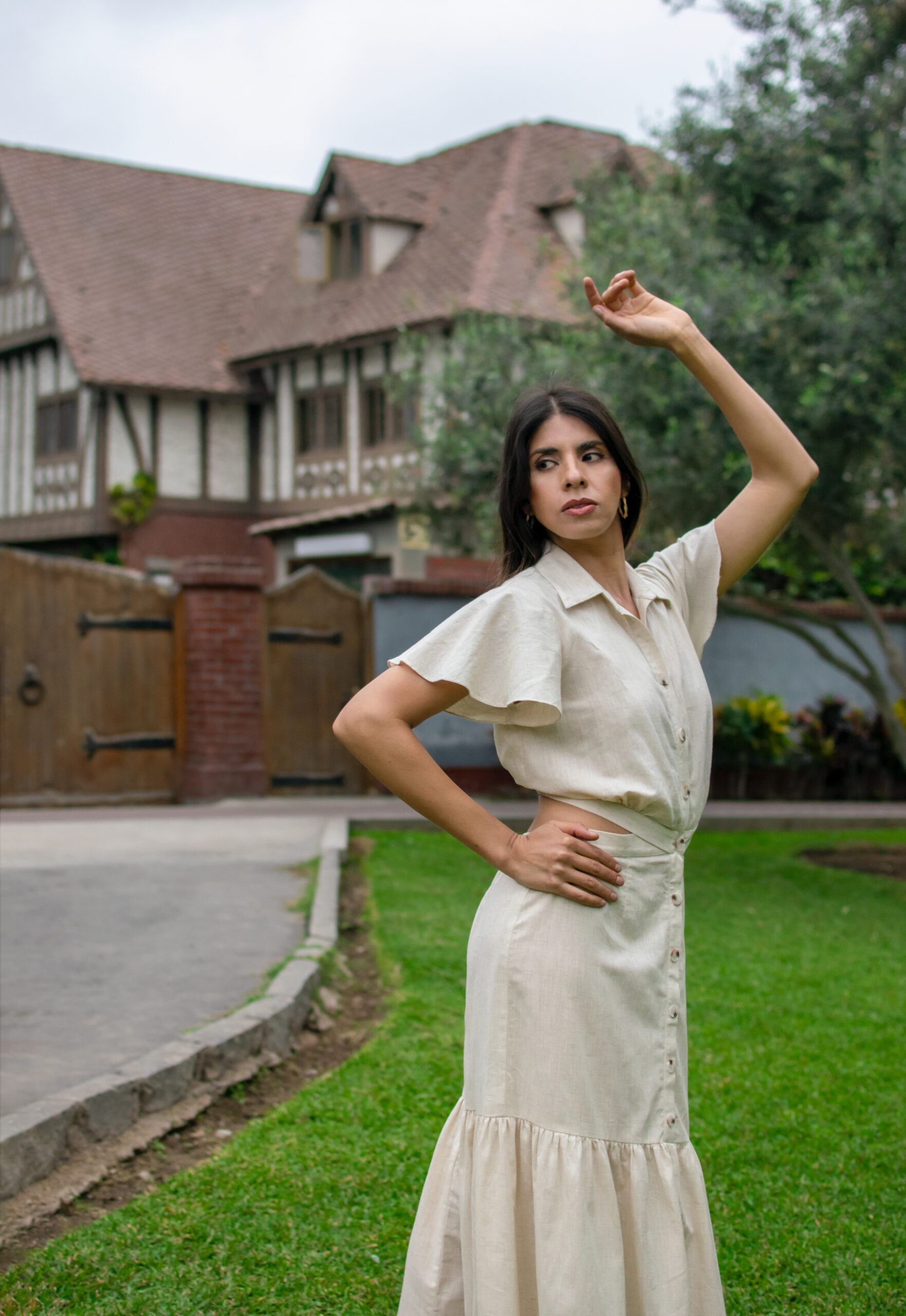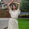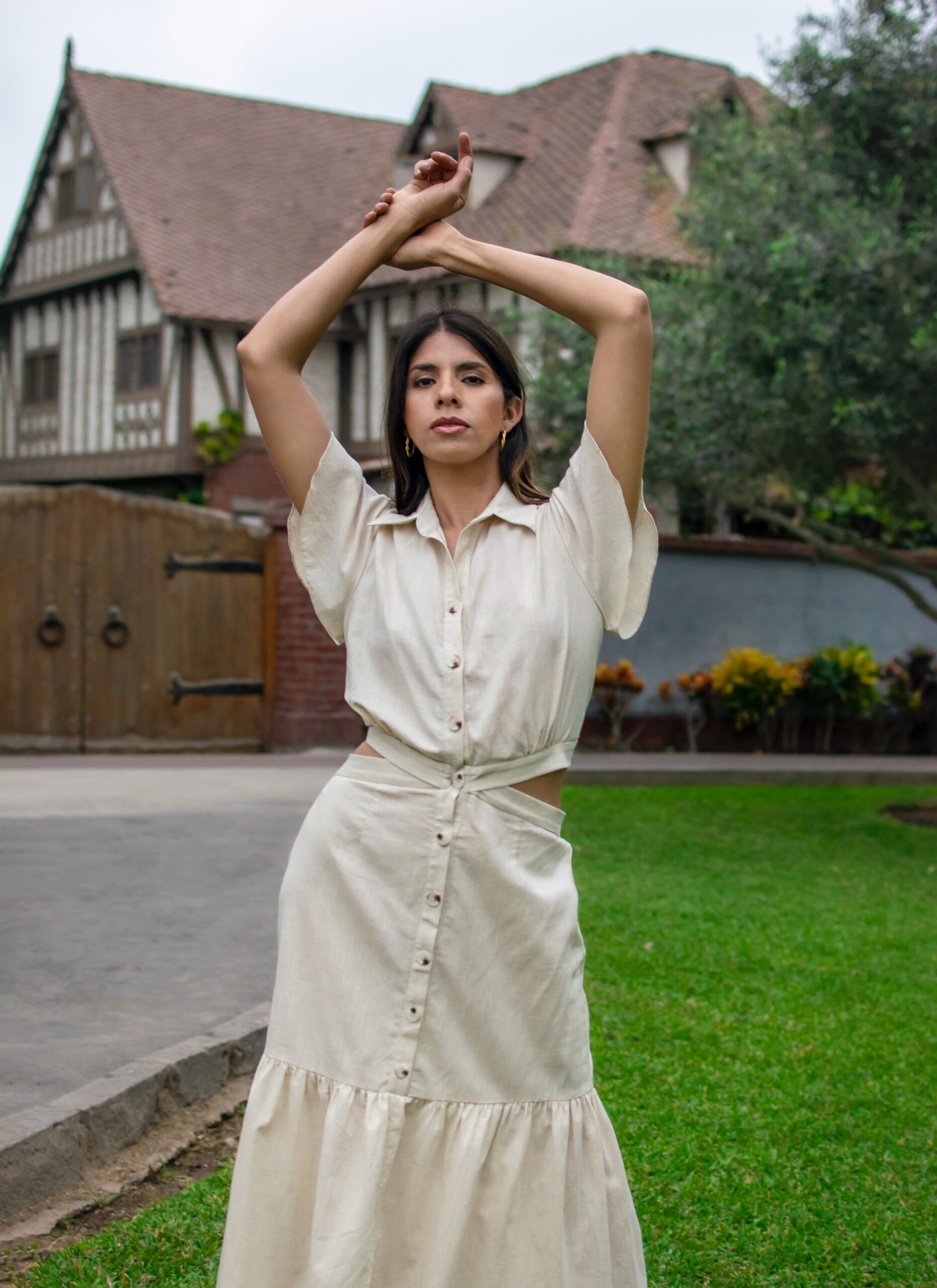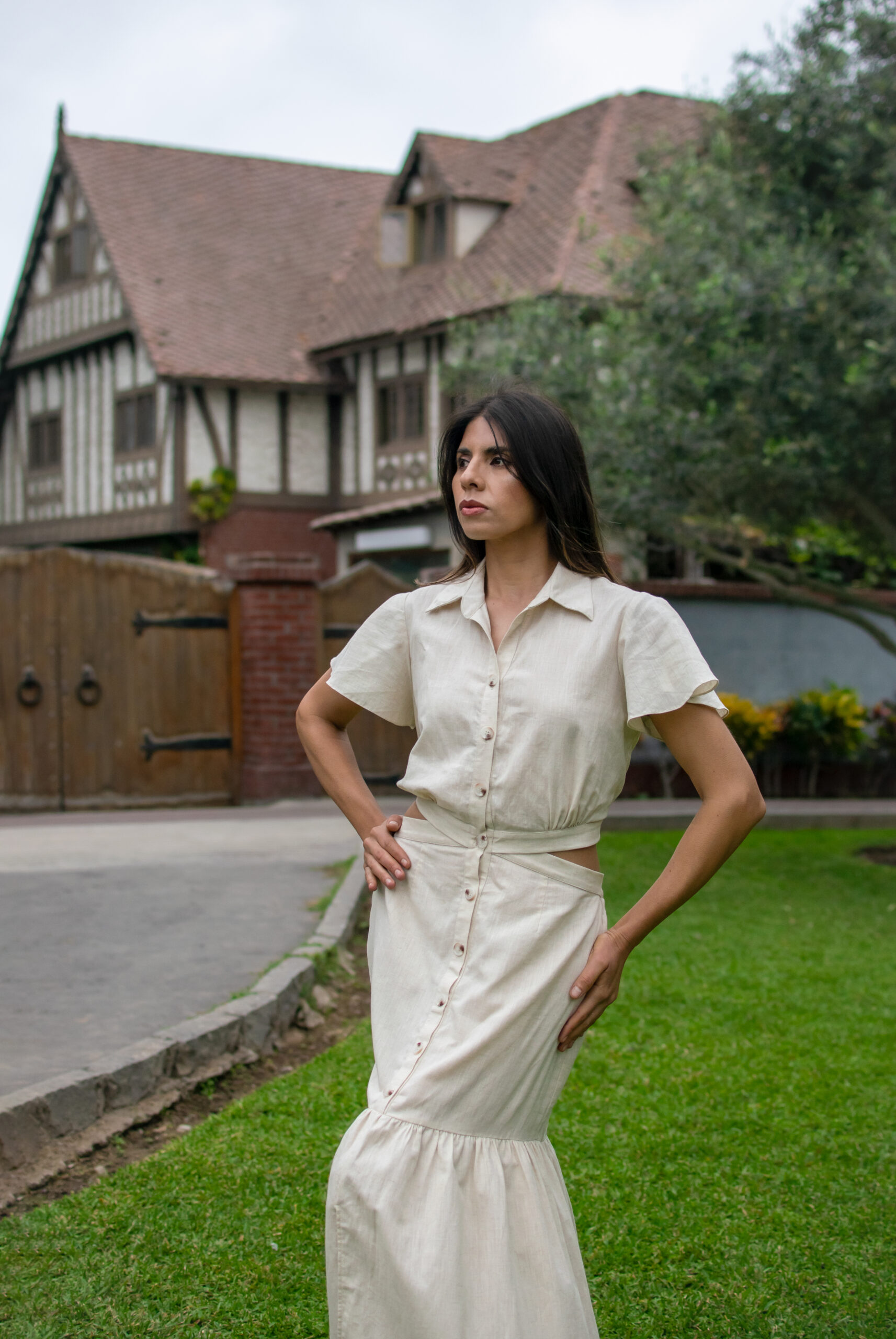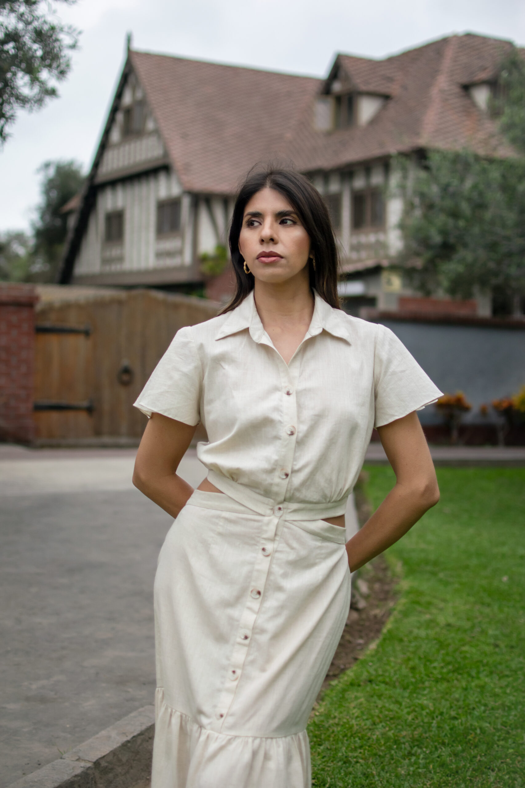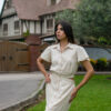 Vestido camisero con botones frontales y corte en la cintura, un básico versátil que combina estructura y frescura.